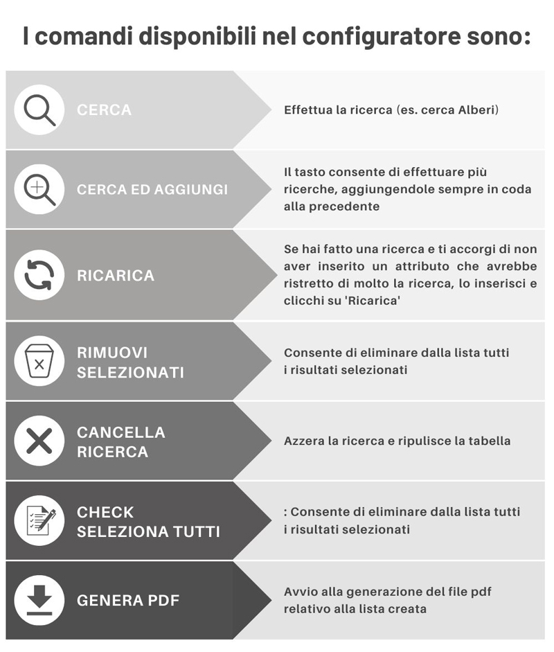 Attraverso questo configuratore è possibile creare liste ad hoc derivanti da ricerche singole o multiple. Un esempio di ricerca può essere il seguente: