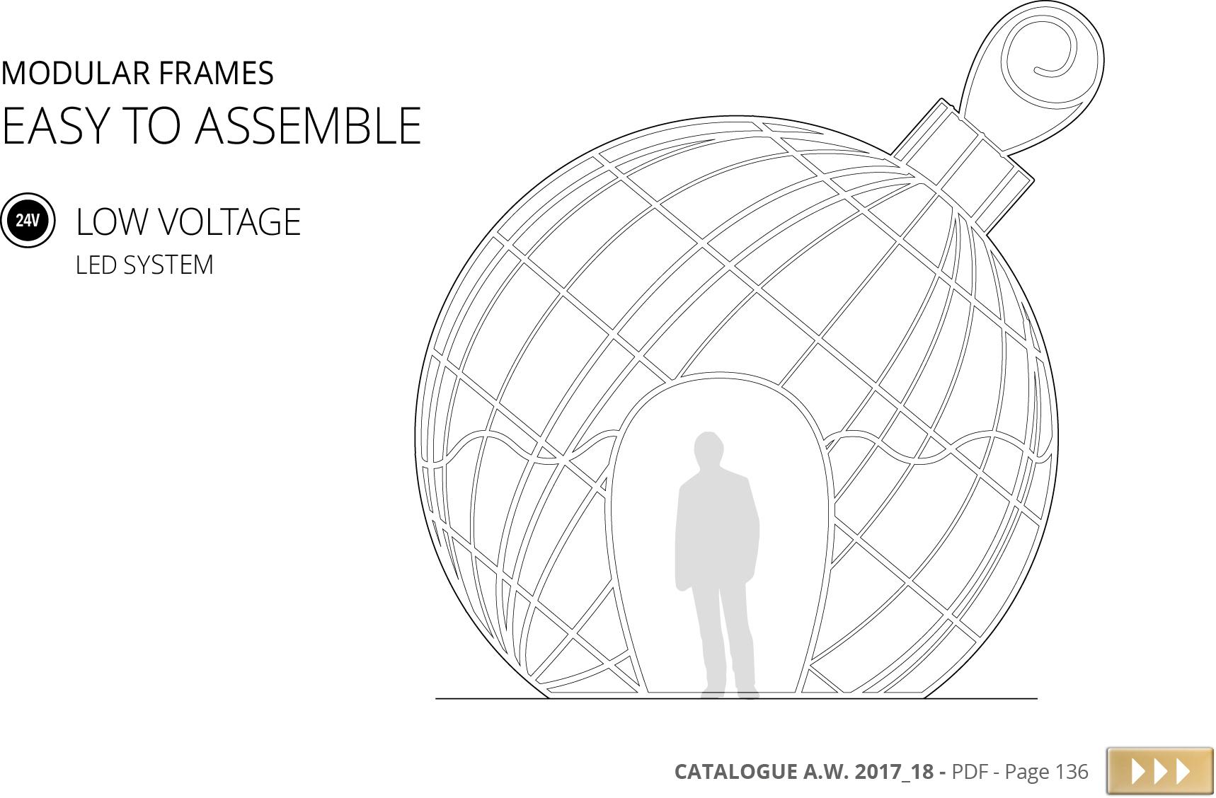 Curlien 500 and Hensel 500 are part of our best-seller products: provided in modular frames to save space during the storage, they’re easy to assemble in less than 2 hours. The frame is built in powder painted aluminium, light and long-lasting even outside, but steady thanks to the galvanised iron base that keeps the structure fastened to the ground. All our spheres are lit up with low voltage LED strings to guarantee safety in each use situation.