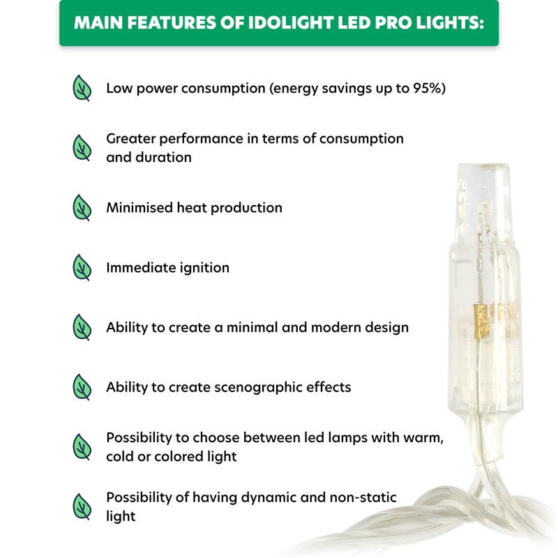 They respond exactly to the need for savings, allowing you to cut energy costs and use it in full respect of the environment. The Idolight LED PRO lights also have a much longer lifespan than other similar products.