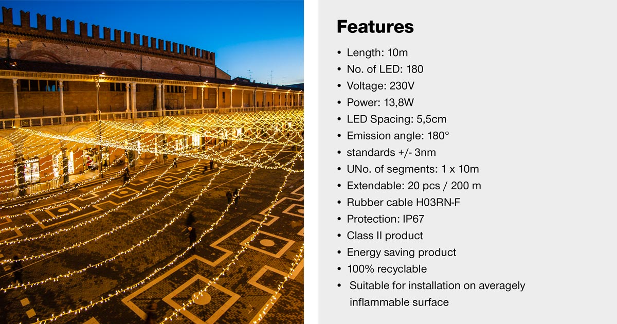 The high density of LED makes Idolight ST180 the richer string of the range ideal for luxury projects.