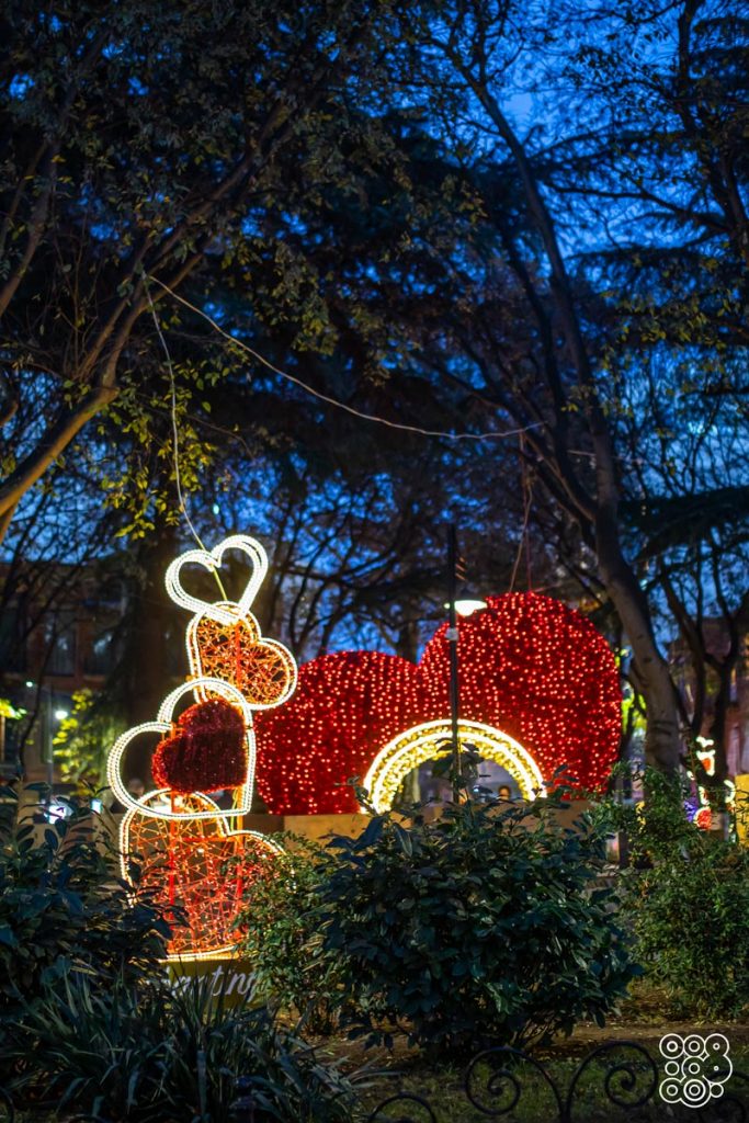 Lots of ideas for a special Valentine’s Day, giant hearts, neonflex lettering, heart-shaped benches for all lovers in the mood for declarations of love, selfie kisses and stolen kisses.